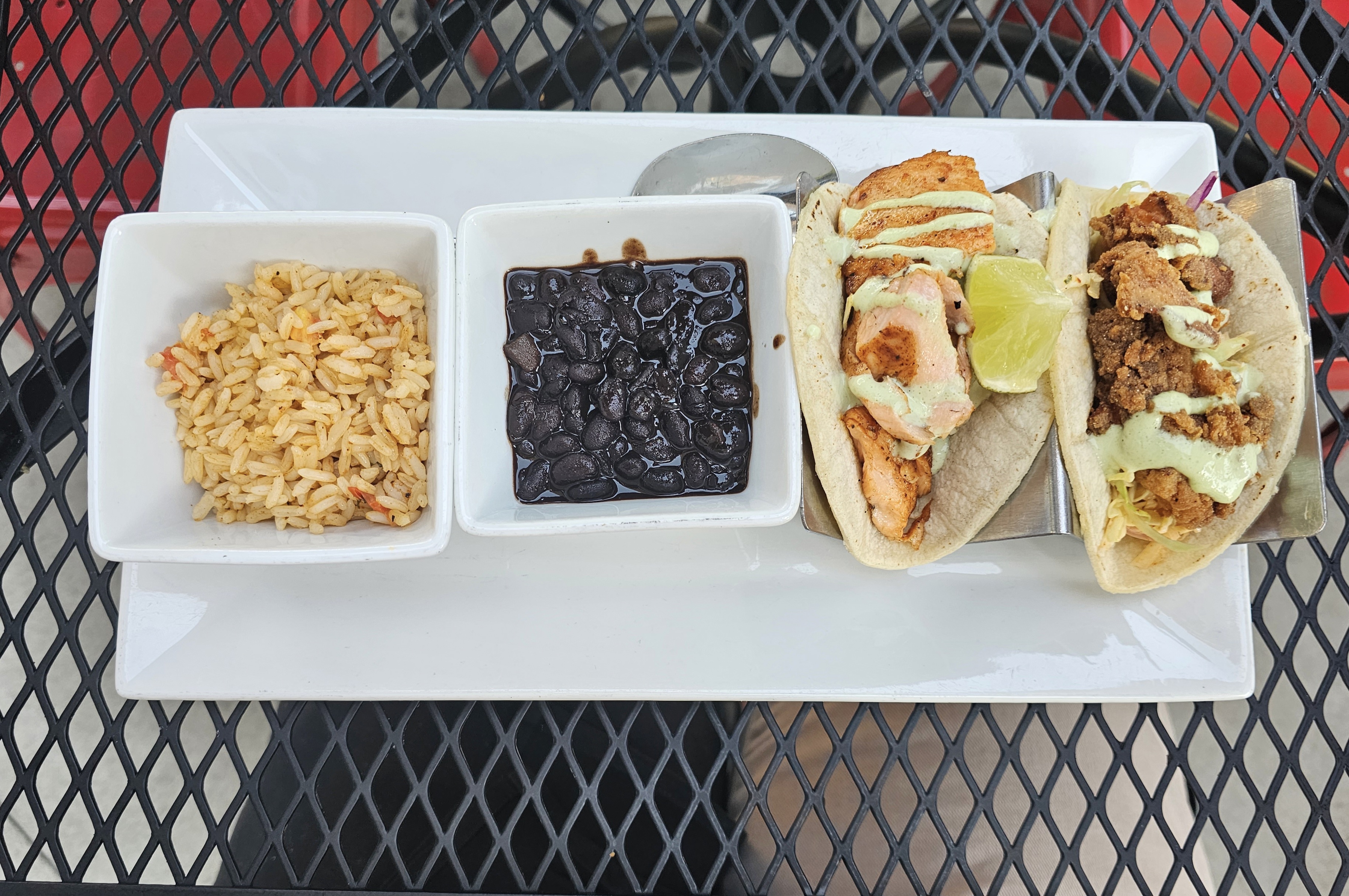 For our main courses, my friend chose mushroom and veggie enchiladas, and I ordered salmon tacos (one grilled and one fried). My friend expressed that she really liked her enchiladas. Salmon is one of my favorite types of seafood, so I enjoyed my tacos. I found that I preferred grilled salmon to fried salmon in this case because it was lighter, more tender, and the salmon flavor was more prominent.
