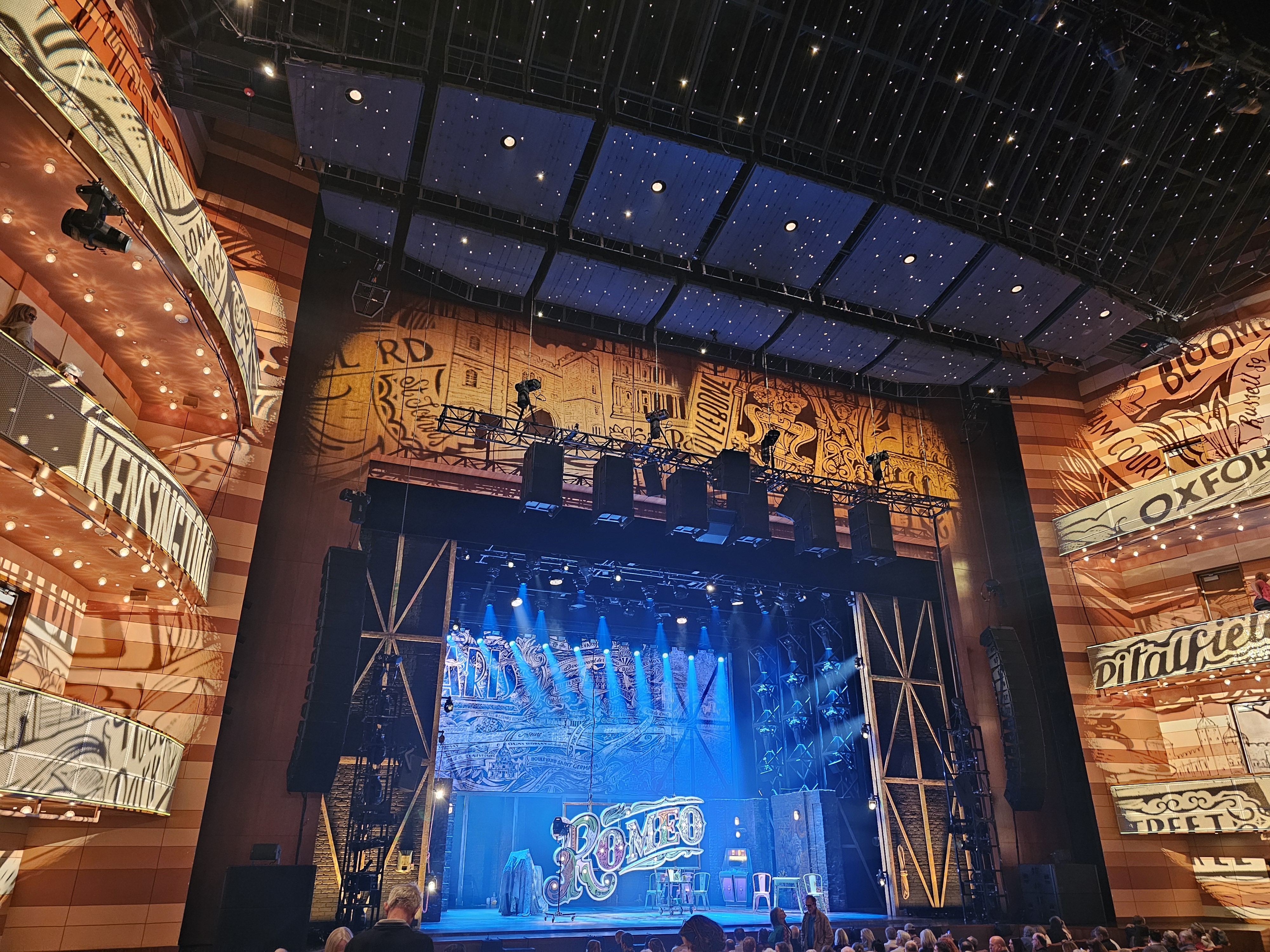 We saw & Juliet at the end of its run in Salt Lake City. However, click here for information about the national tour’s performances in other cities. Similarly, Broadway at the Eccles will resume at the end of September 2025. Click here for information about the 2025-2026 season.