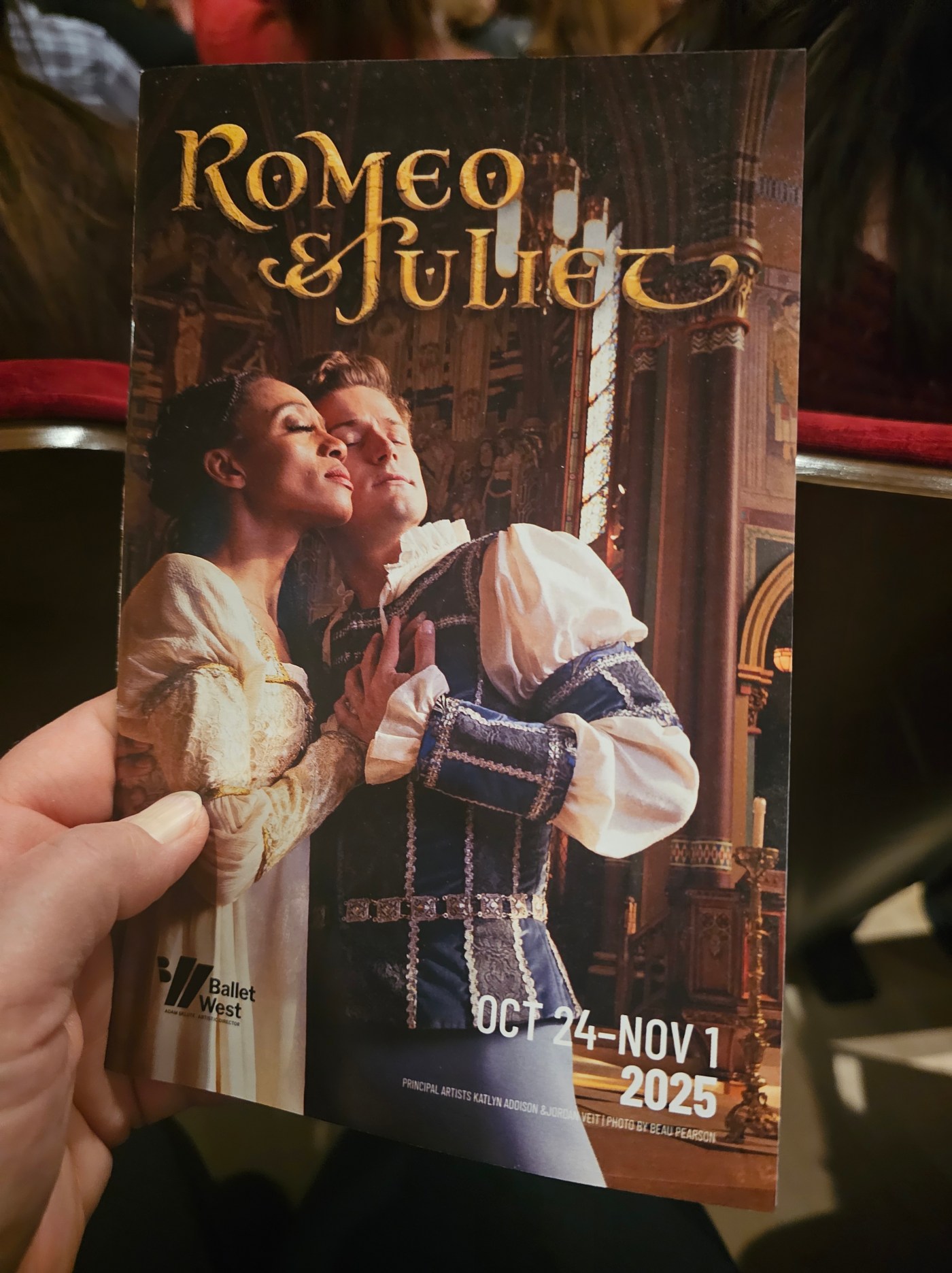 Ballet West began its 2025-2026 season with Michael Smuin’s Romeo and Juliet set to music by Sergei Prokofiev. I was fortunate to see this ballet with my friend Mony a few years ago, and I absolutely loved it, so I was excited to have an opportunity to see it again. I purchased a ticket for last Saturday night’s performance, and Ballet West delivered an exquisite production!